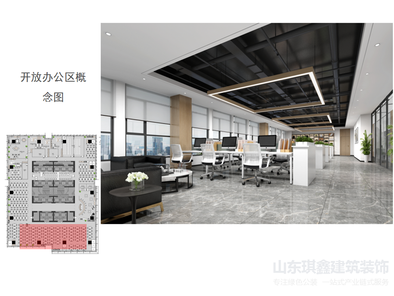 一走進辦公室,首先感受到的是寬敞明亮的空間布局。大面積的落地窗讓自然光充分灑入,不僅提高了室內(nèi)的采光效果,還為員工帶來了愉悅的視覺體驗。辦公區(qū)域采用了開放式設計,便于員工之間的溝通與協(xié)作,同時也增加了空間的通透感。