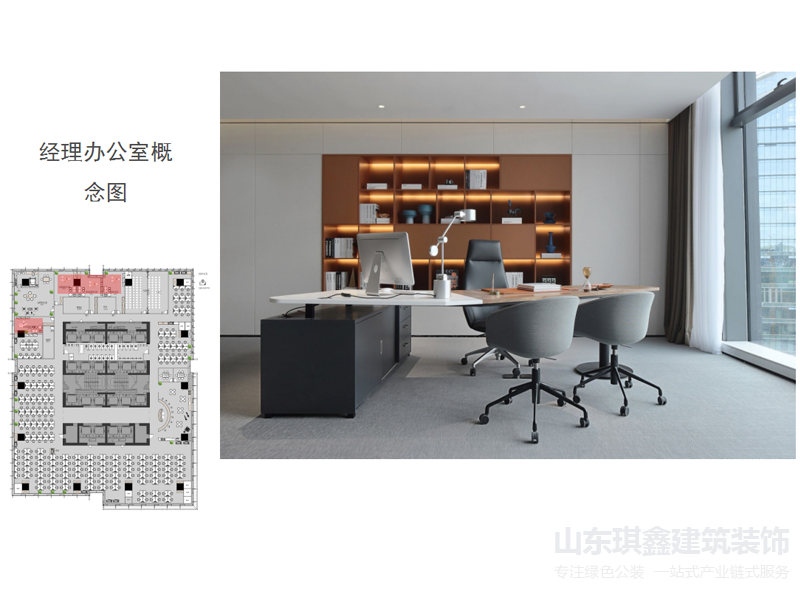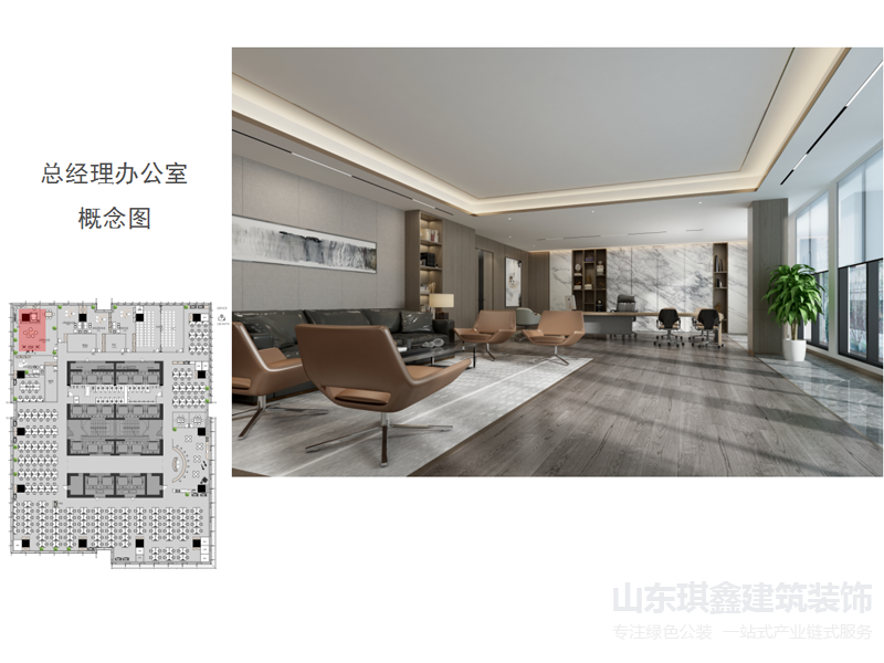 在裝飾元素上,辦公室巧妙地融入了一些企業(yè)文化元素。墻面上掛著公司的發(fā)展歷程和榮譽證書,展示了博軍集團的輝煌成就。同時,辦公室還擺放了一些綠植和藝術品,為員工帶來一種輕松愉悅的工作氛圍。